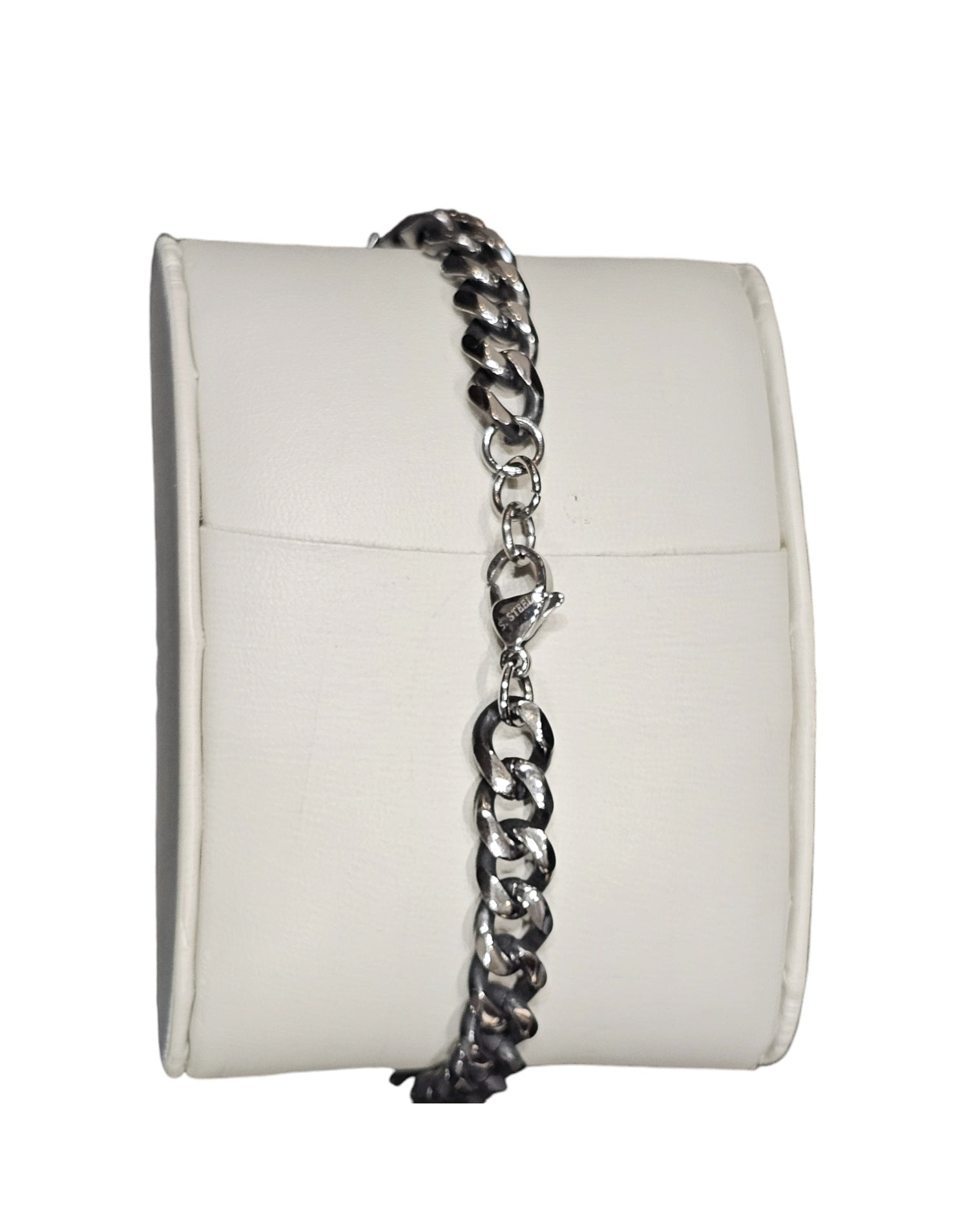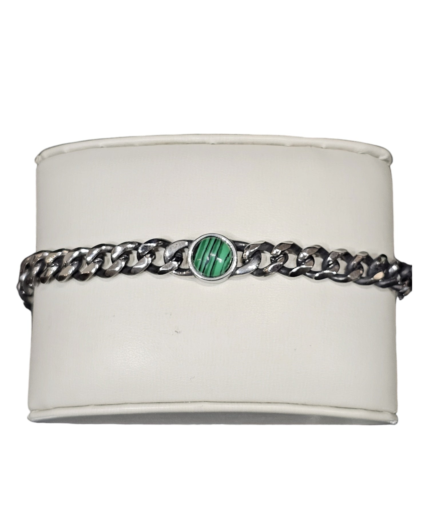 Questo bracciale è caratterizzato da una robusta catena in acciaio, che lo rende resistente e durevole. Al centro è presente una resina con un bellissimo effetto pietra, che lo rende unico e di tendenza. La chiusura con moschettone garantisce una perfetta tenuta per un tocco di stile in più.
