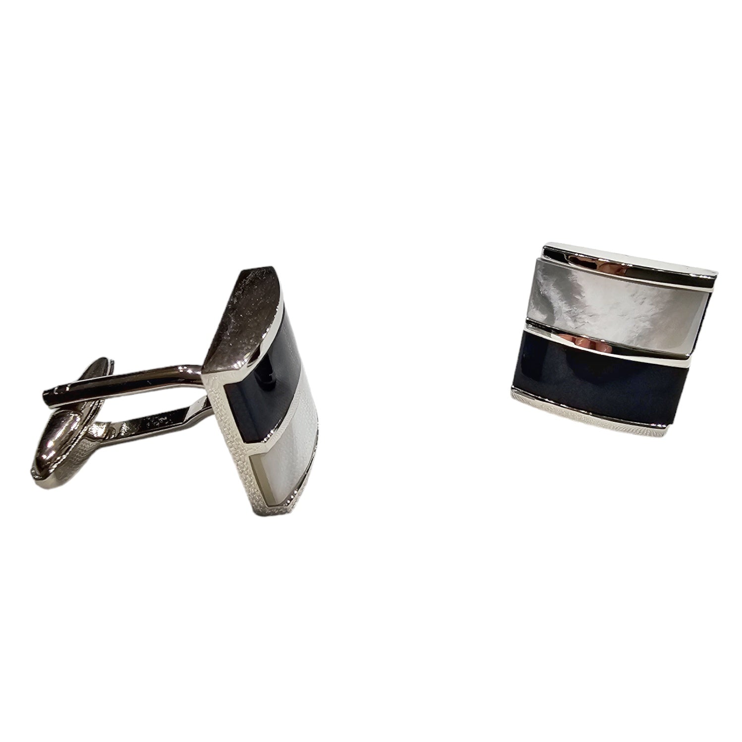 Questi gemelli eleganti sono realizzati in acciaio resistente e decorati con madreperla e smalto nero. Con una combinazione di materiali pregiati, questi gemelli aggiungeranno un tocco di classe e stile al tuo abbigliamento formale. Perfetti per l'uomo moderno e sofisticato.